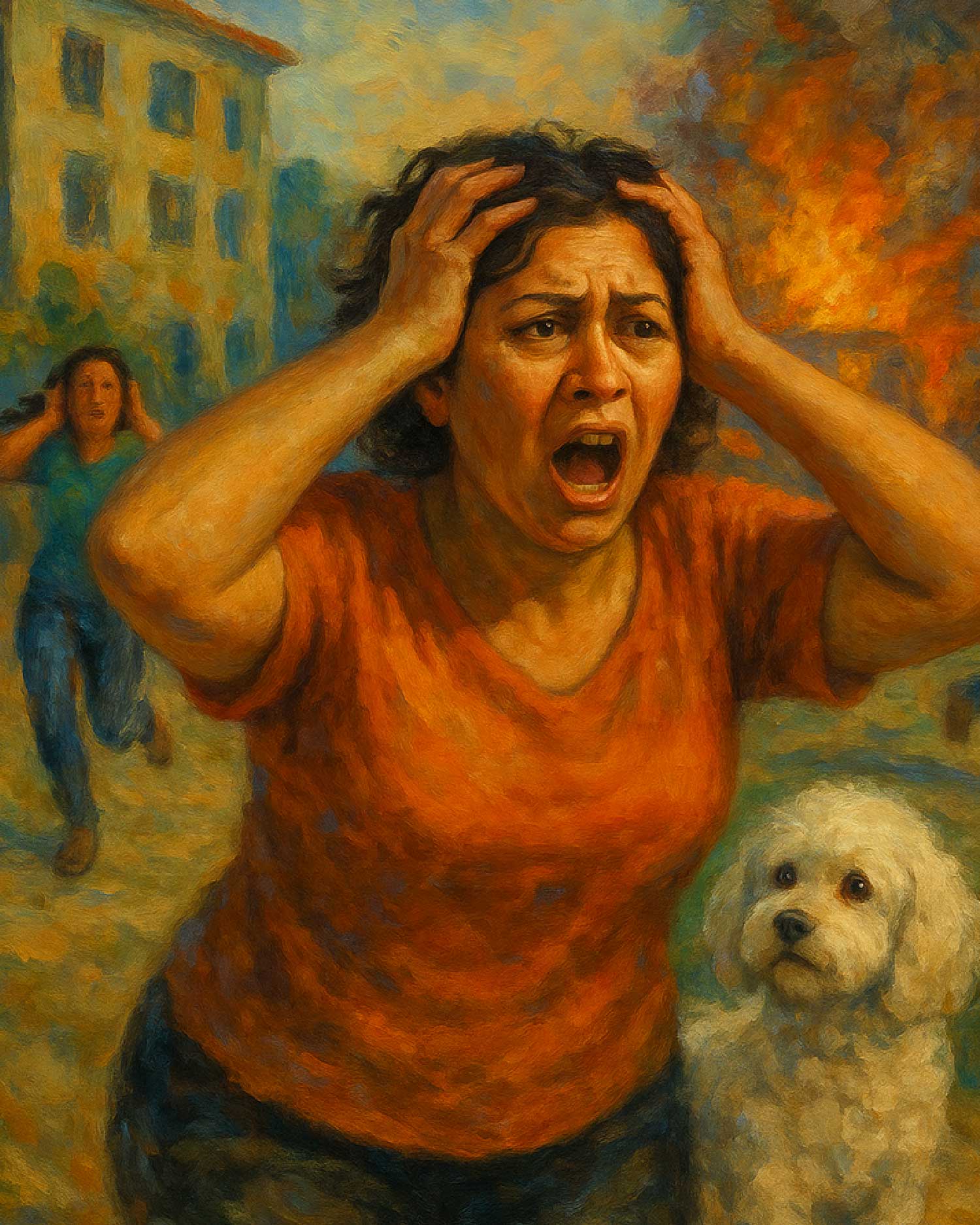 Pasó más de media hora, cuando un estruendo sacudió el ambiente. Nubia escuchó dos o tres gritos que la alarmaron. Corrió a ver qué ocurría, cerrando la puerta tras de sí para que la perrita no saliera corriendo. Le preocupaba su tamaño, y aún recordaba el susto que le dio el perro grande del vecino, que aunque no era agresivo, un día la hizo temblar.